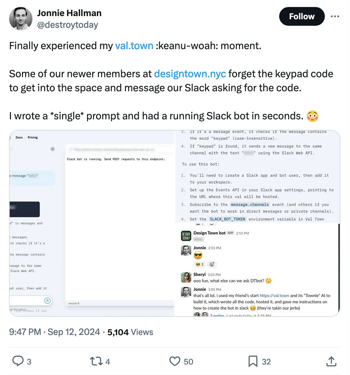 If you get stuck, please reach out in our Discord, or email me directly (steve@val.town), and include a link to your val. We’re here to help!