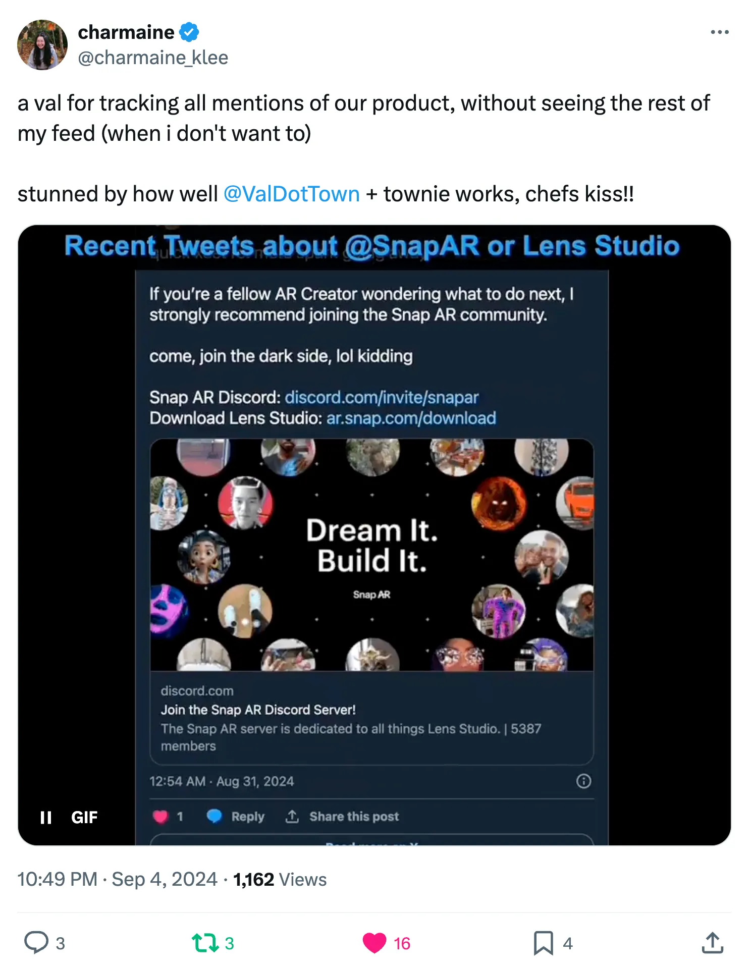 Charmaine built a site that tracks mentions of her company’s product on Twitter.